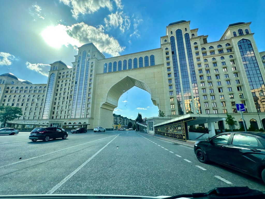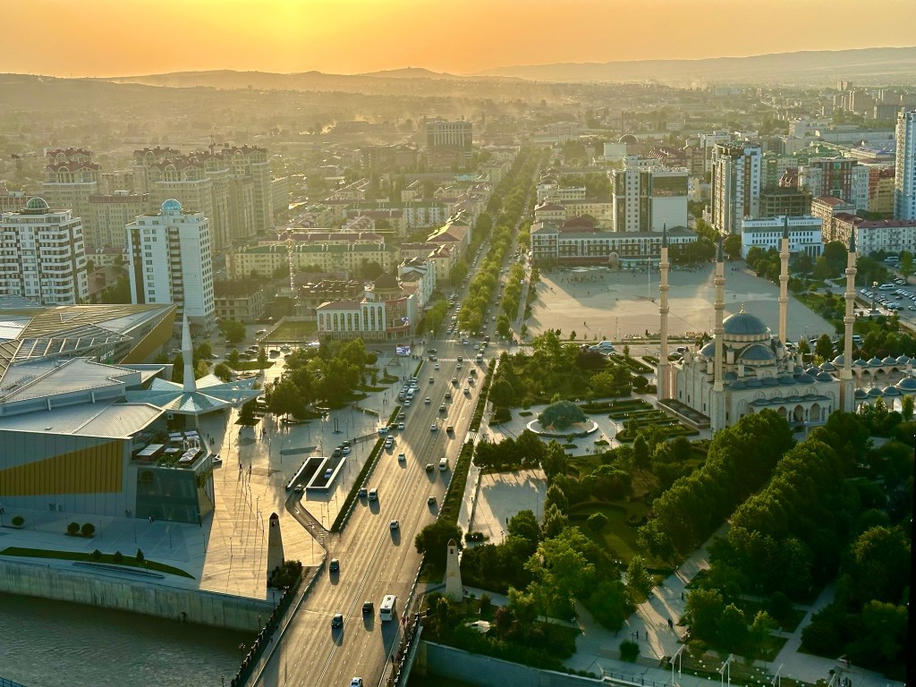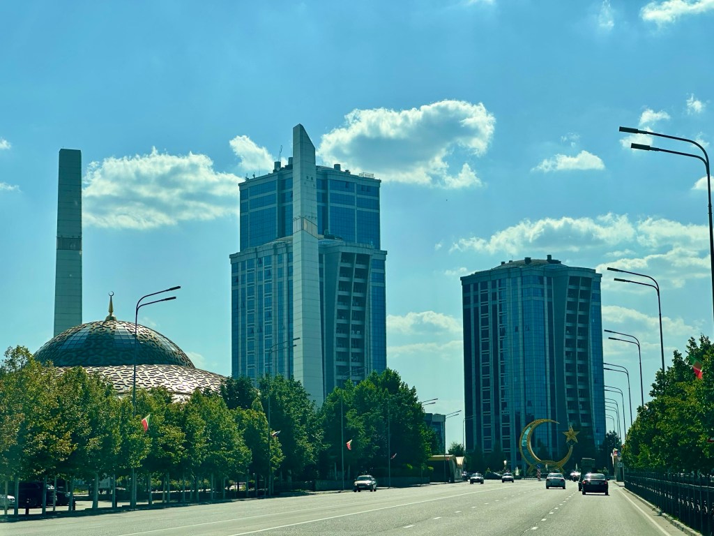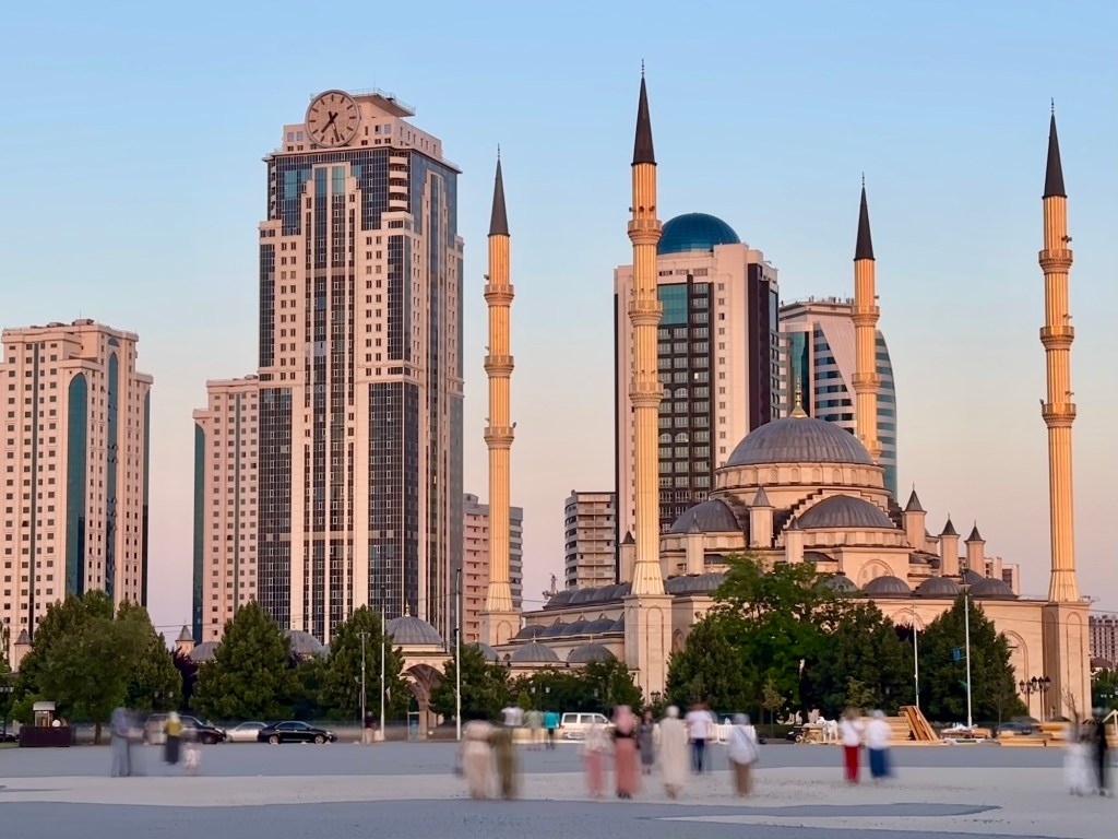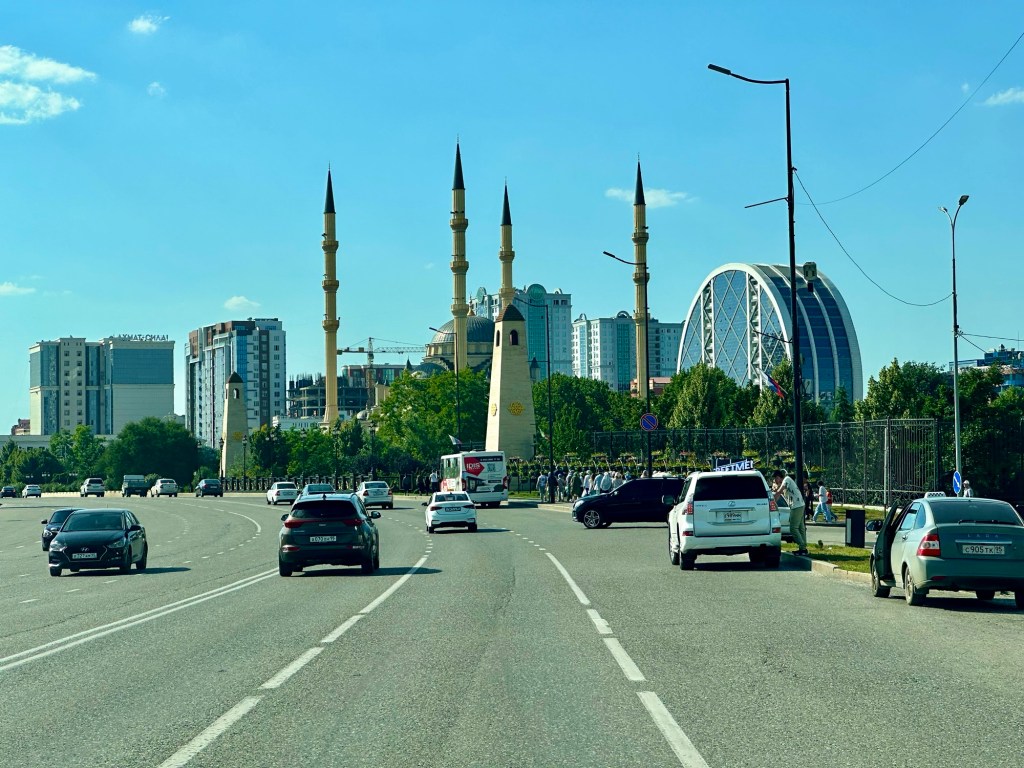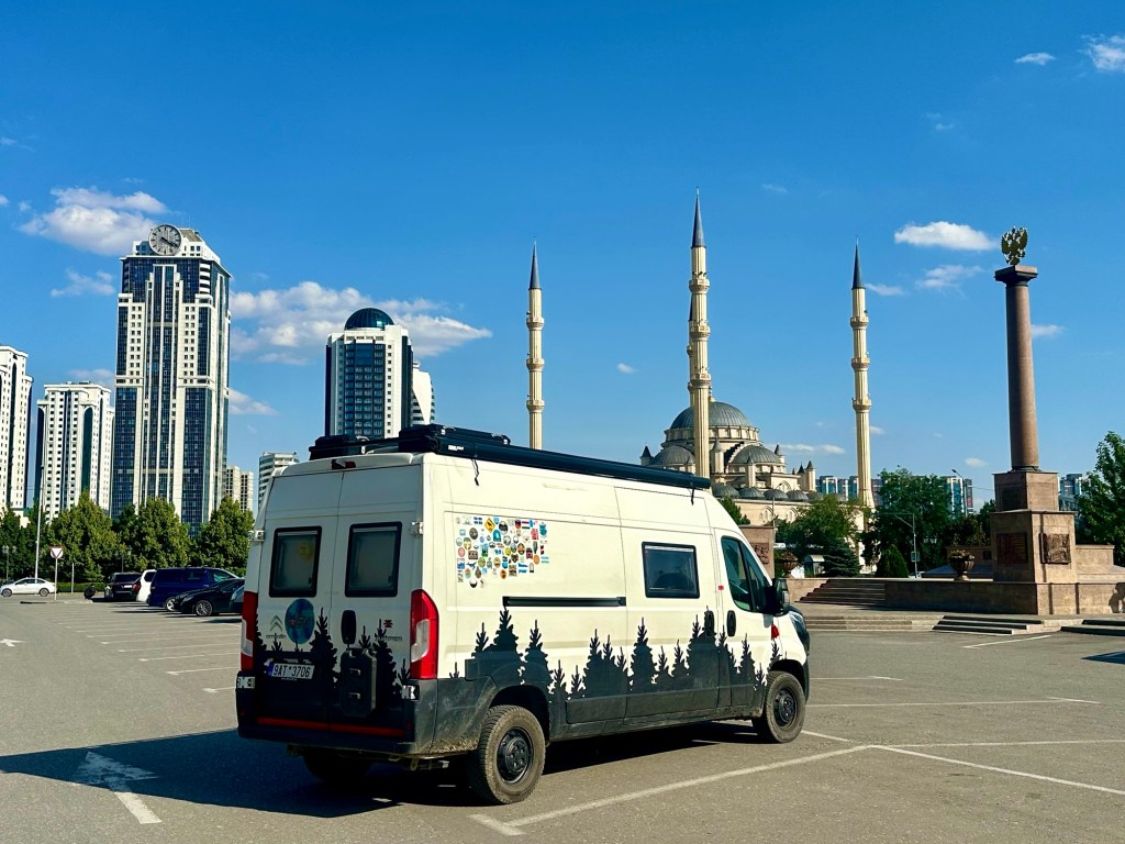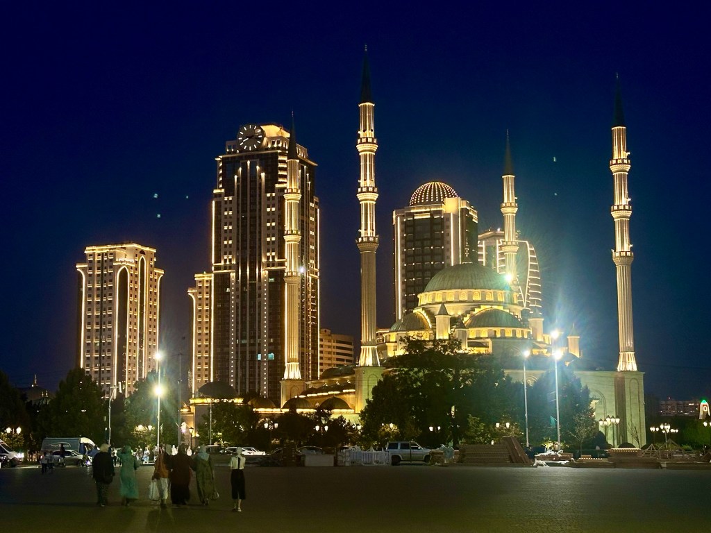 Grozný nás docela šokuje. Když totiž do jeho centra po Putinově třídě (fakt) přijíždíte, všude kolem vás se tyčí moderní výškové budovy, všude je spousta výloh západních obchodů, vše je jako ze škatulky a uprostřed města se tyčí nádherná nová mešita „Srdce Čečenska“. Jak zjistíme později večer, město ještě k tomu po setmění svítí jako vánoční stromeček a rozhodně nevypadá, že bylo ještě před pár lety v podstatě v ruinách. Lidé si ta světélka pěkně užívají a spokojeně se procházejí pod obřími billboardy znázorňujícími místního vůdce Kadyrova juniora. Většina toho, co Grozný a vlastně celé Čečenské tvoří je dnes v soukromém vlastnictví právě rodiny Kadyrovců, která nejdřív celý ten boj o nezávislost zpunktovala, aby si to později rozmyslela a vychytrale přeběhla na druhou stranu barikády. To si ale dnes, zdá se moc Čečenců nepamatuje, respektive ani nesmí…