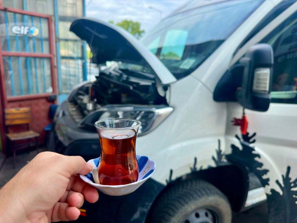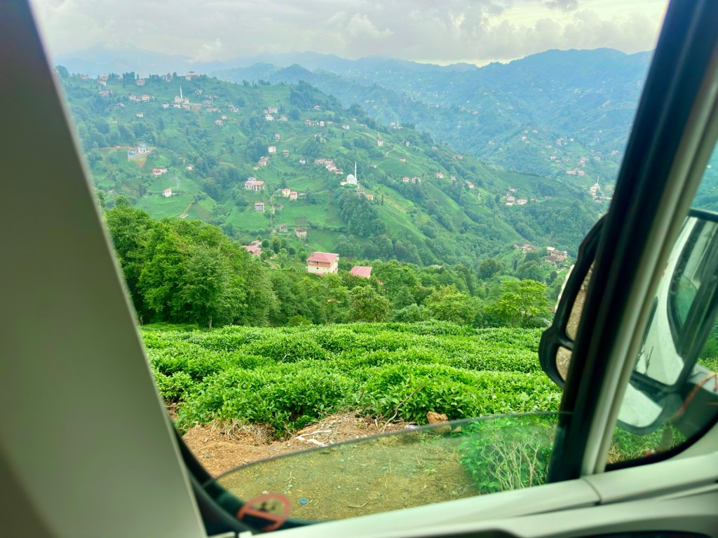My přejezdem turecké hranice u černého moře nejen vjíždíme do poslední asijské země (formálně vzato) této cesty, ale také do neuvěřitelně zeleného čajového ráje. Čaj Rize tu ve velkém z malých skleniček a pořádně oslazený srkají již od nepaměti a místní čajové plantáže jsou největšími v Evropě. Na strmých kopcích se do nedohledna táhnou čajové keříky, které neúnavně ošmikávají místní sběrači čaje. Jízdu pekelně úzkými, strmými a klikatými silničkami zpestřují náklaďáky až po uši plné čajových lístků. Stavíme na jedné z mnoha místních plantáží, na nějakou dobu se úmyslně ztrácíme v čajových plantážích, ochutnáváme čerstvě svařený čaj a samozřejmě si také pořádnou bedýnku čaje kupujeme. Čaje není nikdy dost. Je tu také překvapivě jiné klima. Jsme jen pár kilometrů od horkého a suchého černomořského pobřeží a tady prší, mlží a je příjemně chladno. Ostatně je to prý nejvlhčí kout celého Turecka. Příjemná změna.